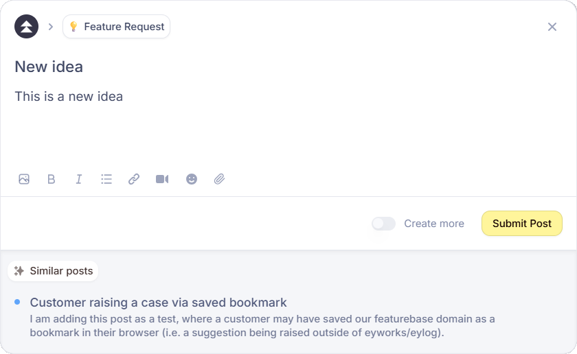 - Once you've finished typing your suggestion, you might see an extra section appear underneath called Similar posts. This uses AI to scour the other posts on our suggestions board to determine if your idea is similar to any that have already been posted. If you find that someone else has already added your idea, then click on the post to open it, and you'll be able to upvote or add a comment.